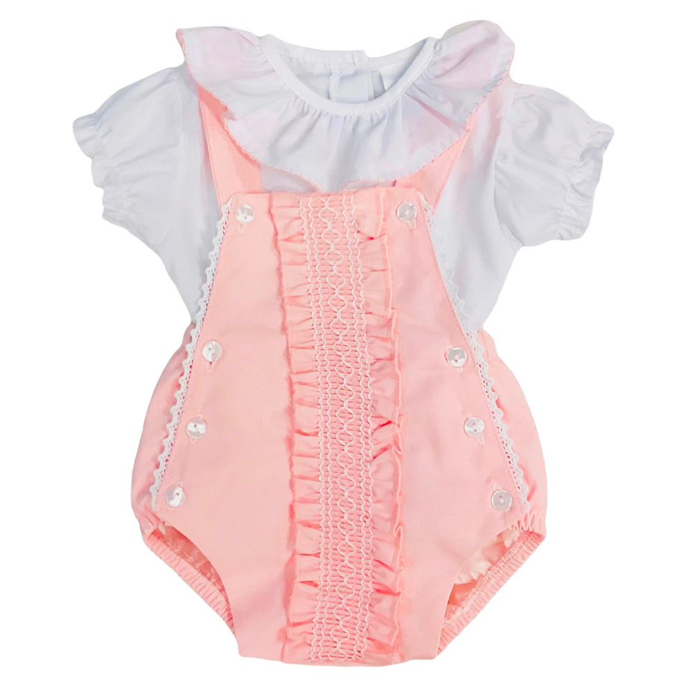 Smocked dungaree shorts set